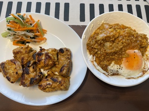 右のスパイスカレーはご飯のかわりに温めた豆腐が入ってます