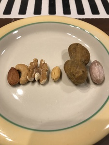 ミックスナッツと比べるとこんなに大きさが違います。。