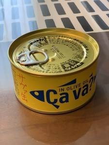 サヴァ缶と書かれて黄色いラベル、オリーブオイル漬けらしいです。